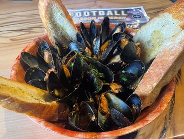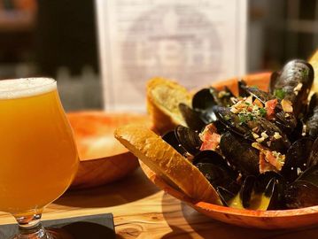 Mussels sauteed with beer, bacon, butter, garlic & crushed red peppers