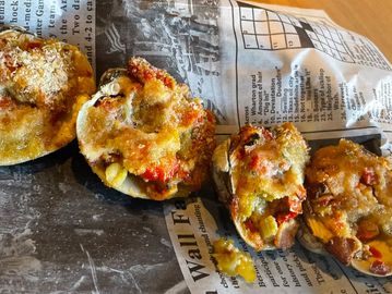 Stuffed with fresh chopped clams, bacon, peppers, onions & celery